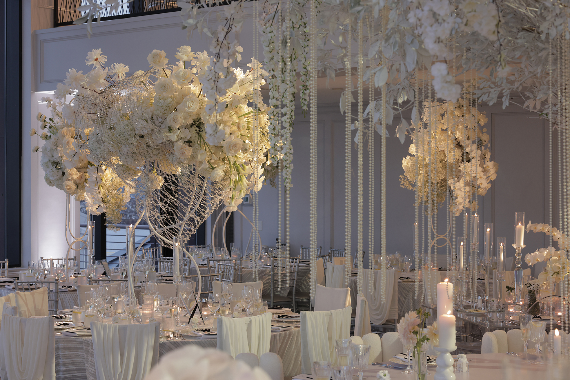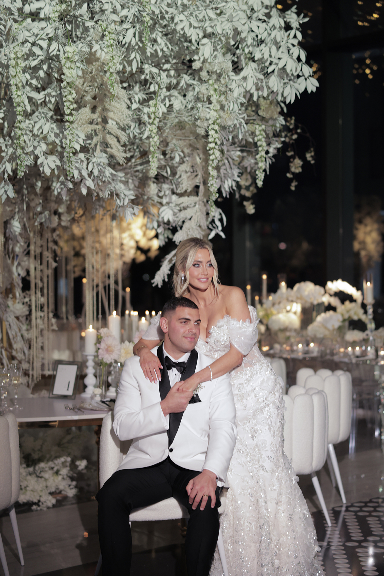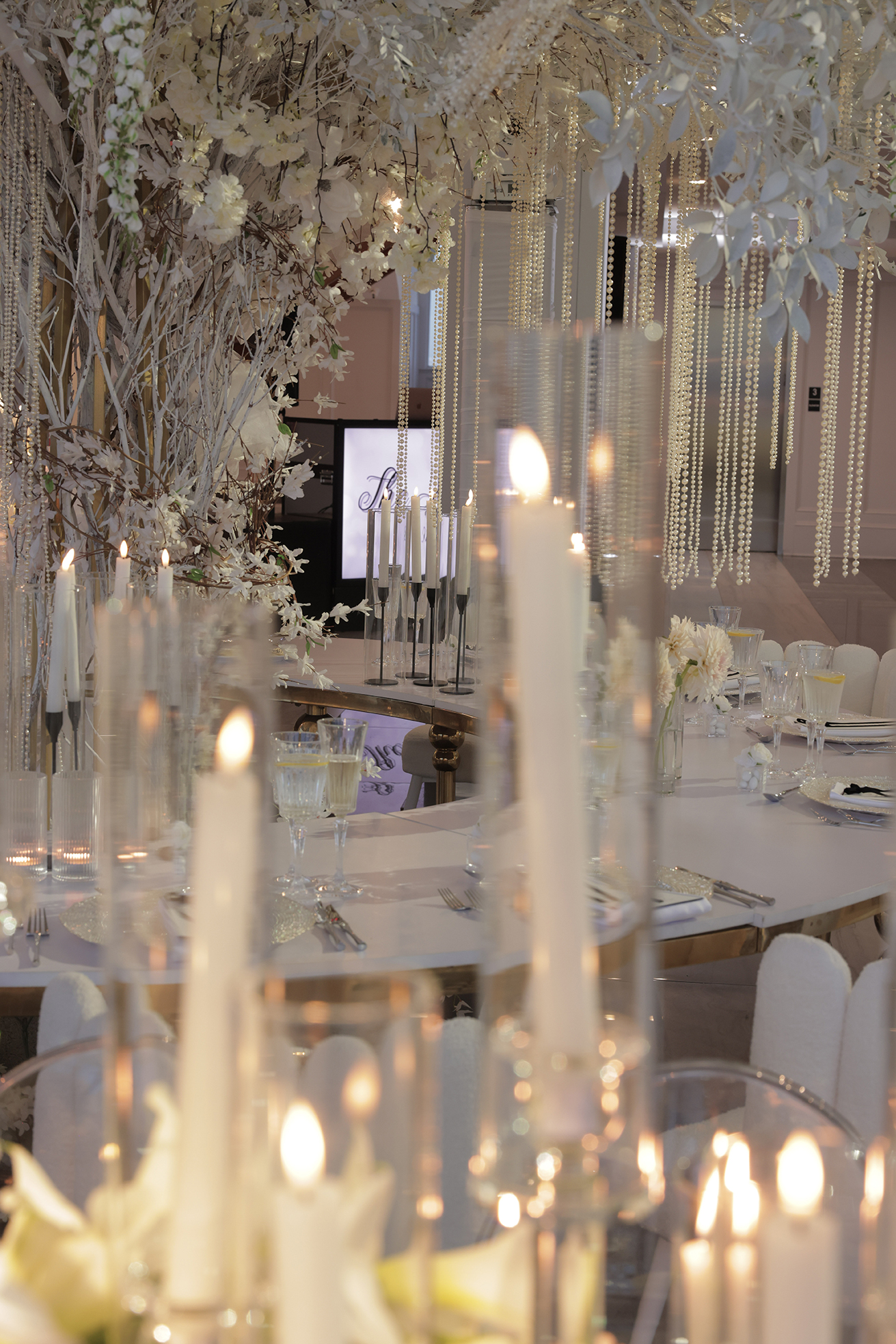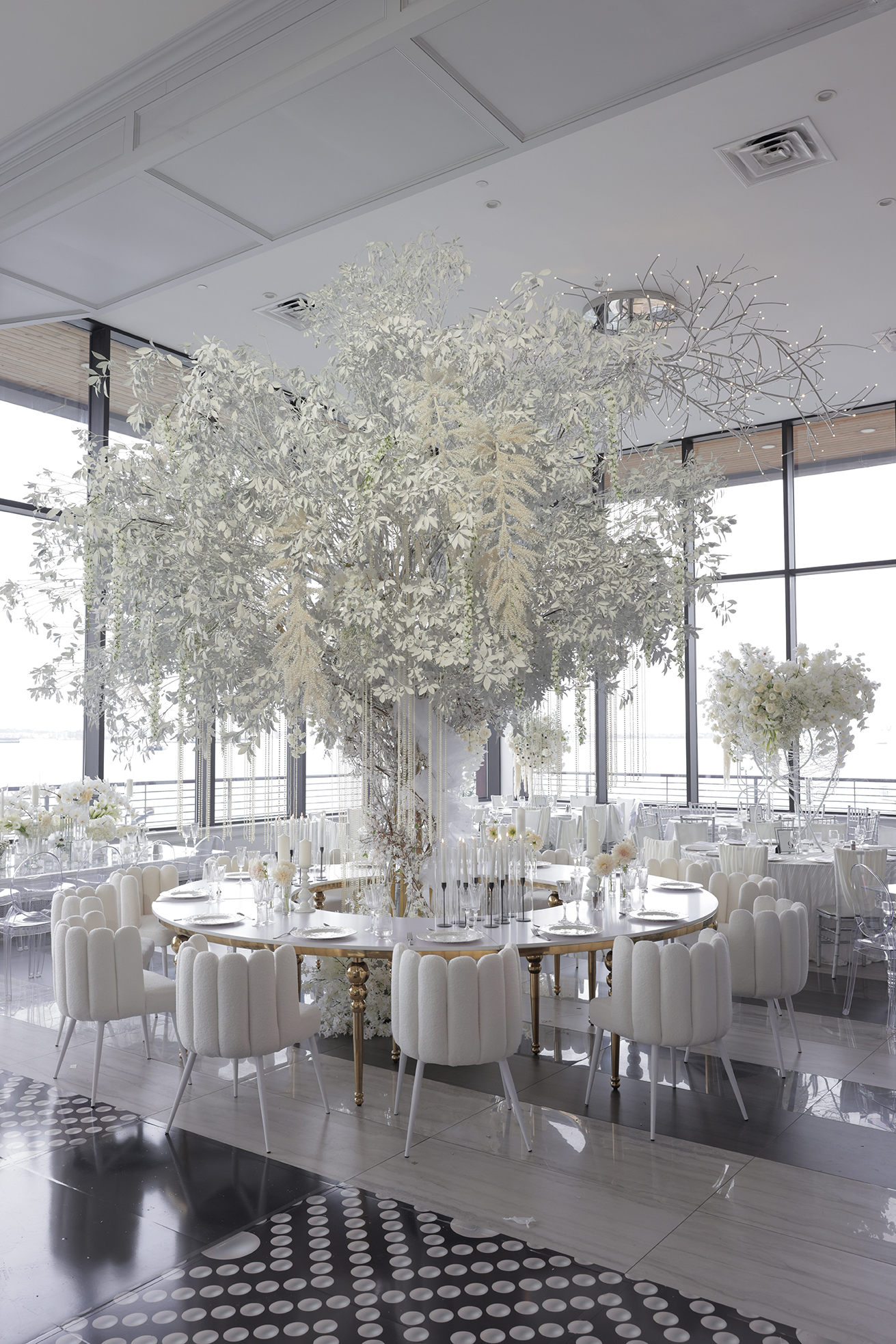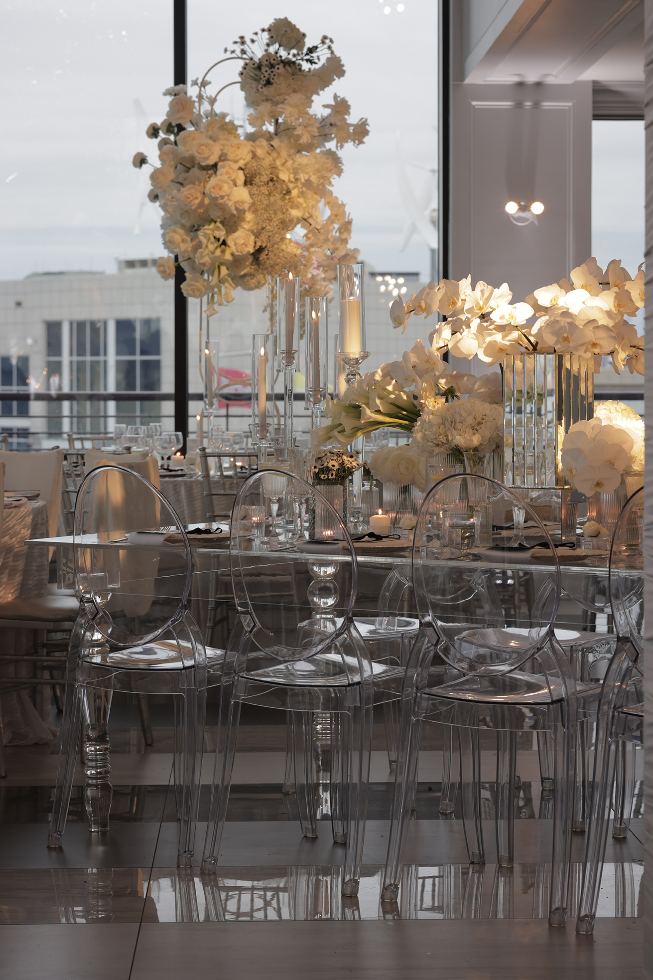 We had the honor of contributing to Carolyn and Nick’s breathtaking wedding at the stunning Hudson House in Jersey City, NJ. Collaborating with the talented teams at Sarcon Flower Couture and impeccable photos captured by MHM Photography, we transformed the venue into a scene of elegance and sophistication. The centerpiece of the design featured our Kleopatra Donut white top tables, beautifully paired with White Magnolia Chairs, creating a modern yet timeless aesthetic. Positioned nearby, our Adeline Clear Table, surrounded by Luna Clear Chairs, added a touch of refined glamour, framing the dance floor with an inviting and chic atmosphere. Included in our amazing decor our elegant Crystaline Decorative Cake table to showcase the couple’s beautiful cake.