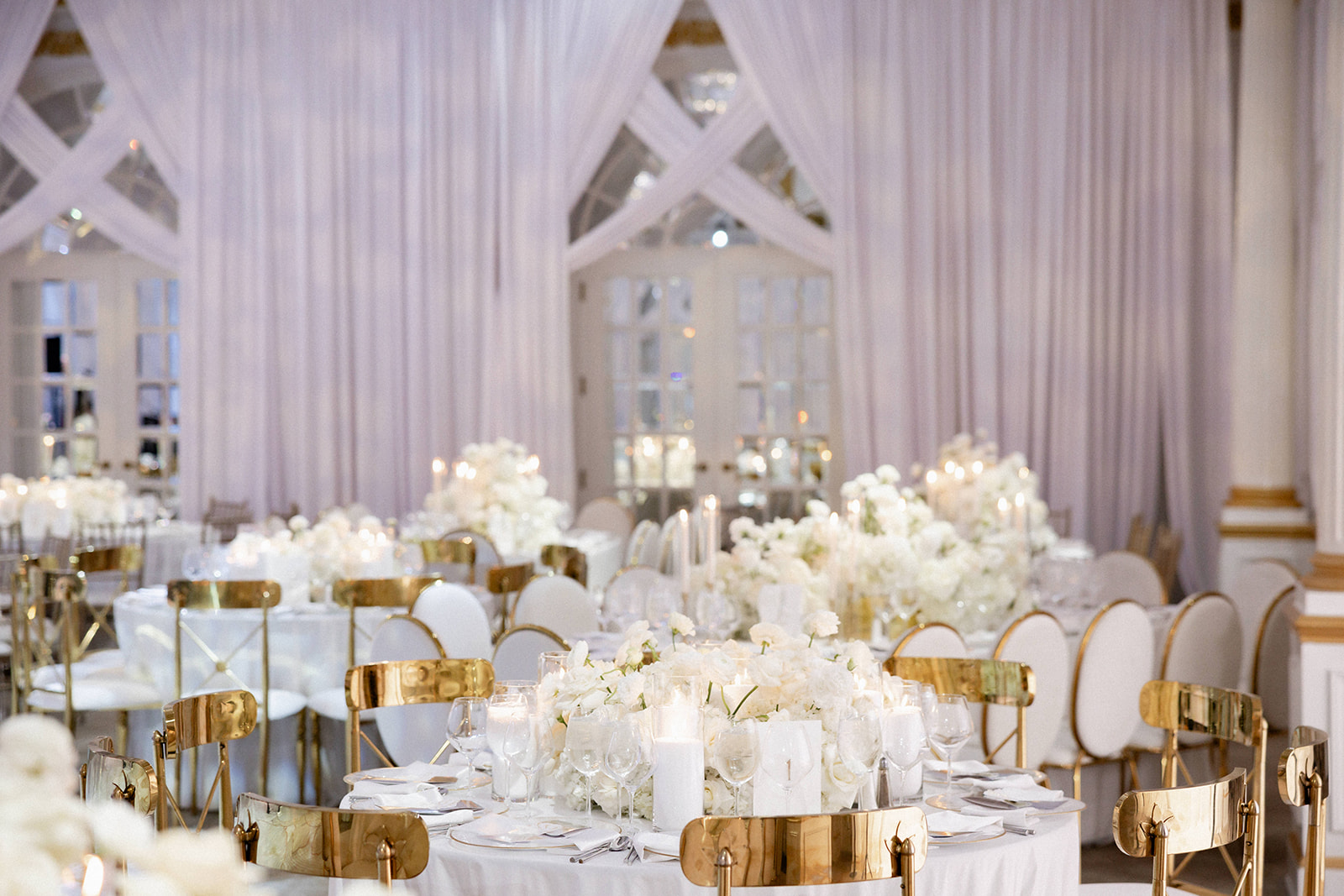 For this year’s reception design, Class Event Rentals partnered with Premier Events by Reema, Charged Up Events, and GoToShout to create an unforgettable reception room. Class Event Rentals elevated the space with our one-of-a-kind white acrylic band stage, paired with our elegant Esther Collection chairs and the timeless Isabela Collection. Together, these elements helped frame the room and create a sophisticated setting worthy of a luxury wedding celebration.