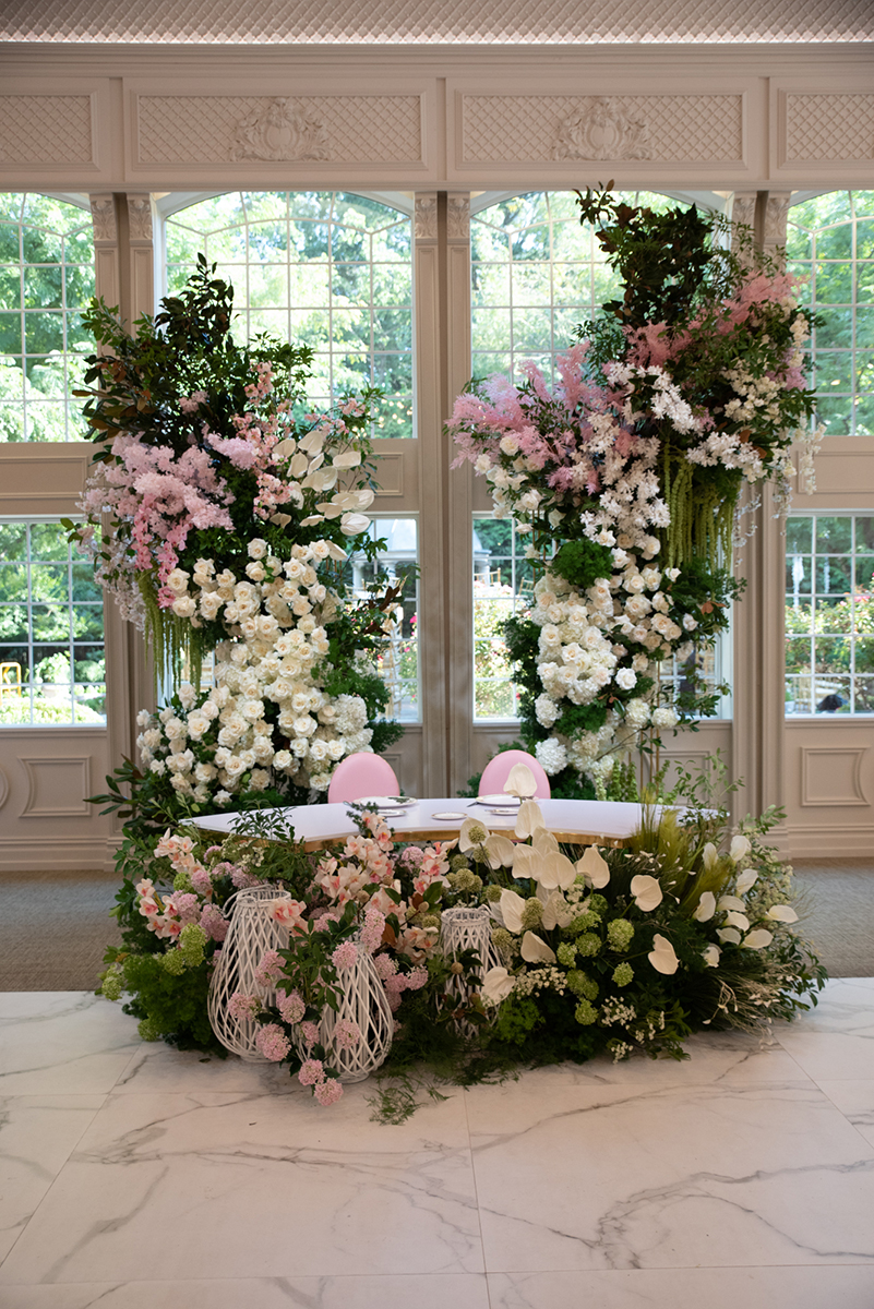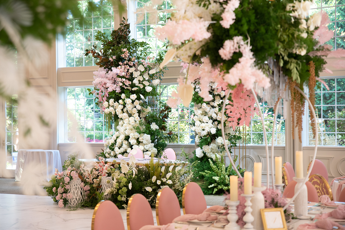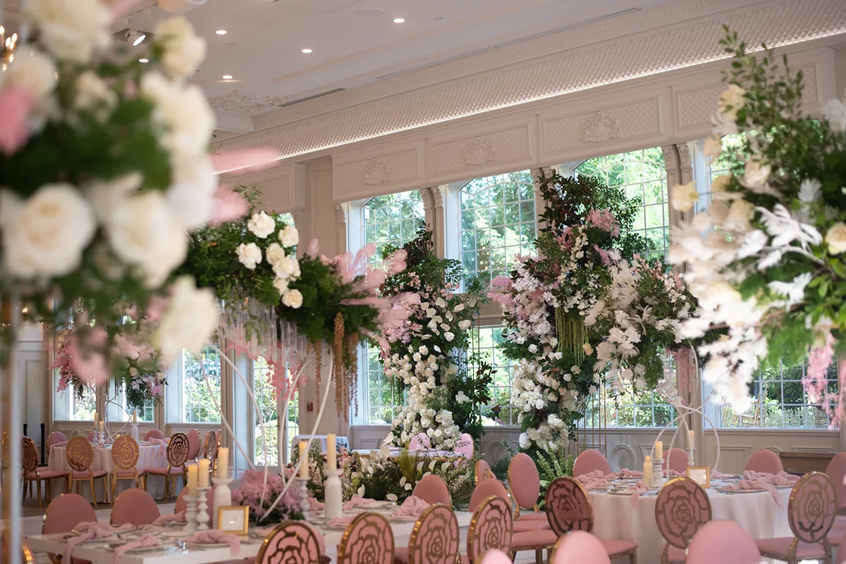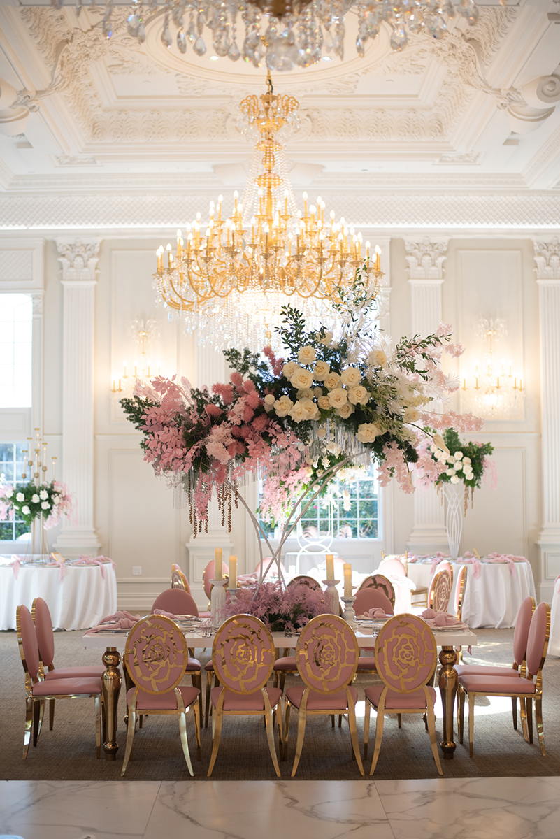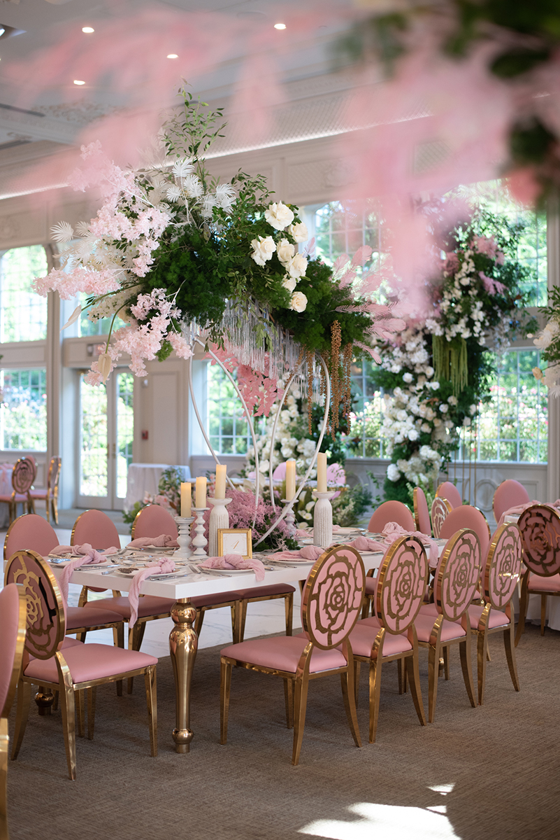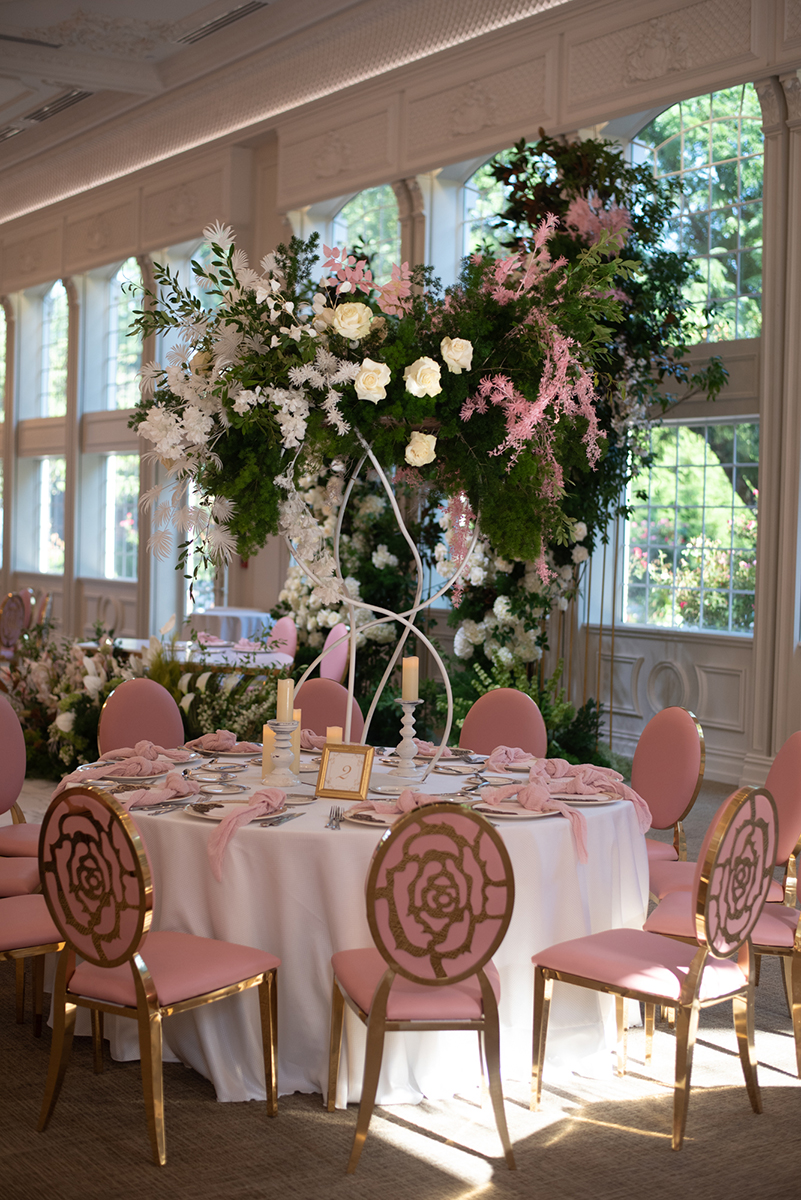 Nanjika and Kevin’s wedding at the Florentine Gardens in River Vale, NJ was truly extravagant. The florals designed by Sarcon Flower Couture were absolutely stunning, and our Rosabelle – Blush Pink & Gold Chairs added a touch of elegance to the event. The Athena Estate tables were also a beautiful addition, providing ample space for guests to enjoy the festivities. And of course, the Khaleesi Sweetheart table was the perfect way to showcase the happy couple. Overall, it was a truly magical day that will be remembered for years to come.